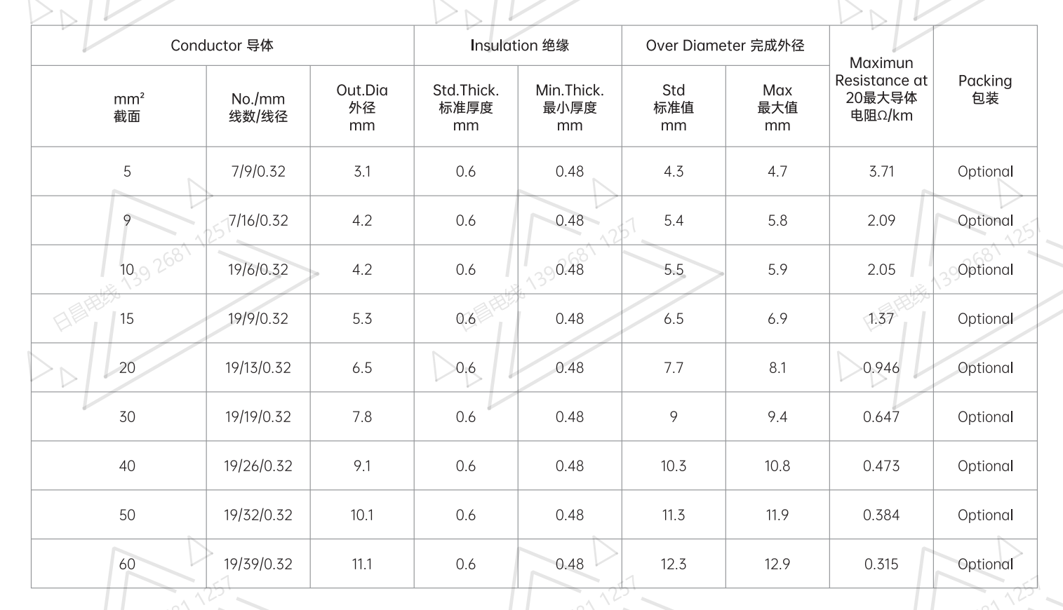 絕   緣 :聚氯乙烯